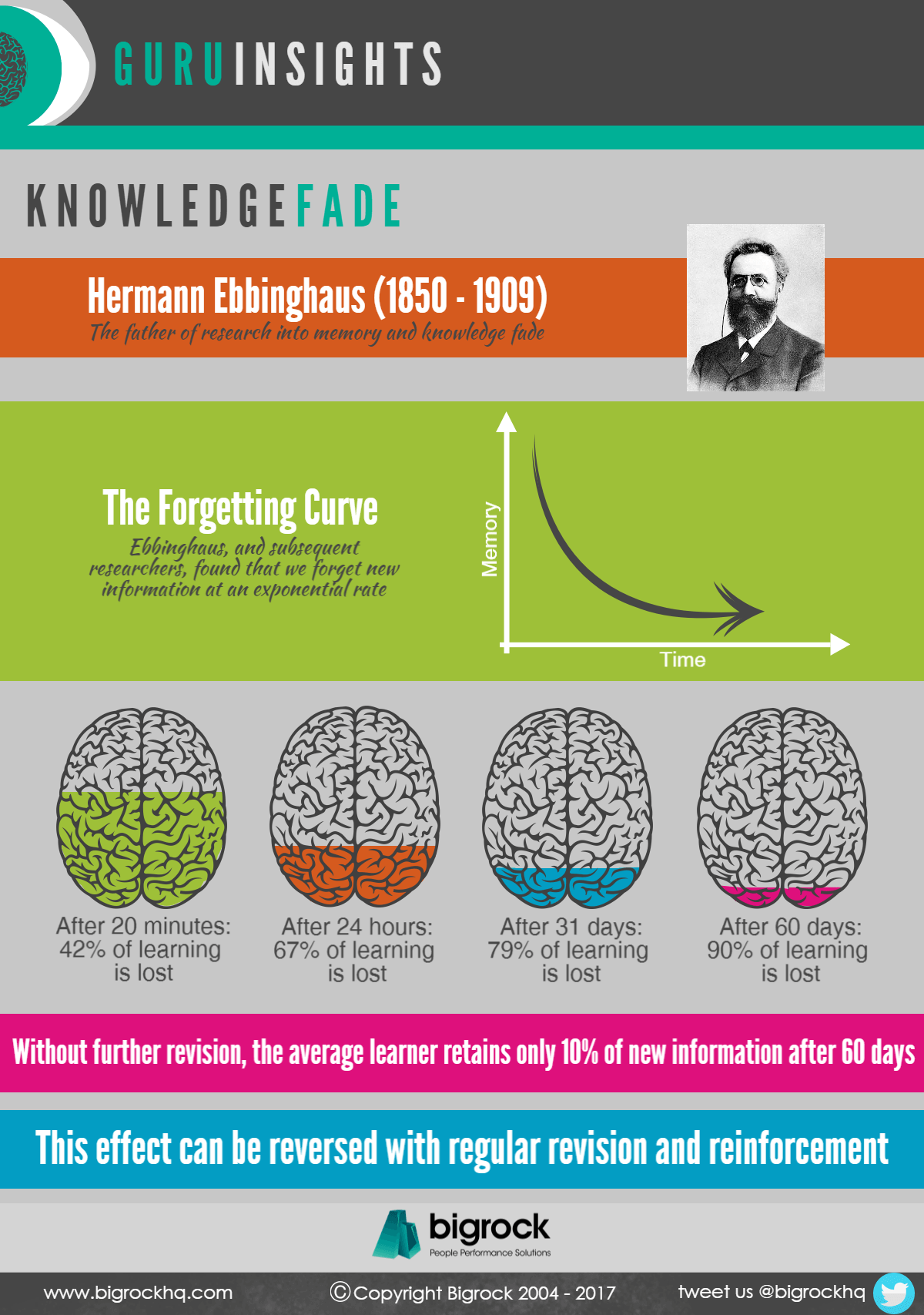 Have your recently attended a Bigrock event? As you begin to apply new learning, consider the research of Hermann Ebbinghaus, a 19th century thought leader whose research into memory and our ability to retain learning still has impact today.